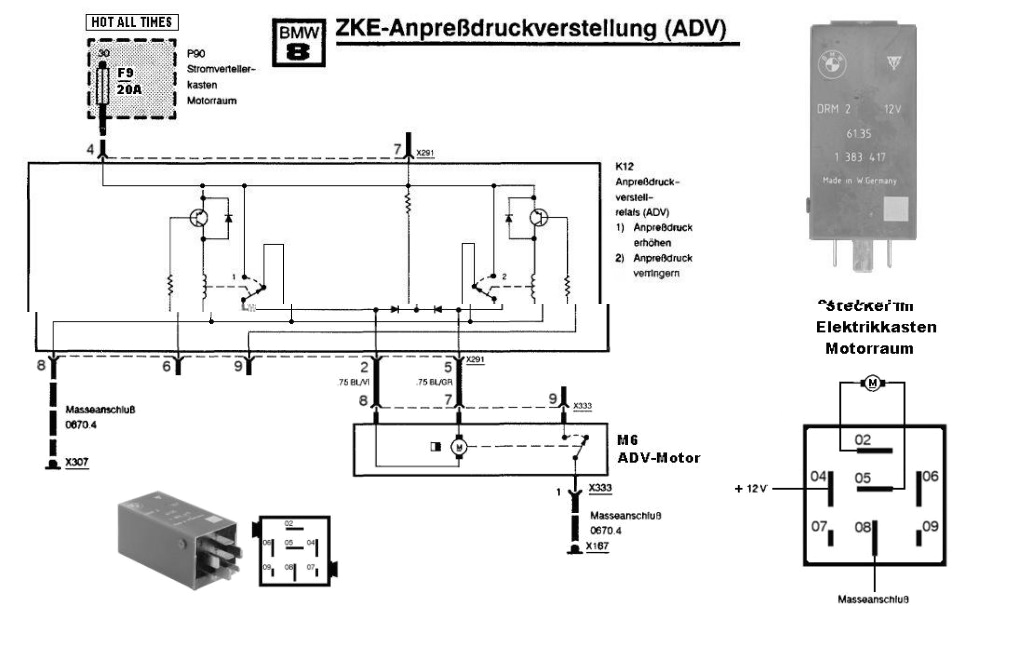 Genauer der Anpressdruck Motor oder auch ADV genannt. Läuft hier irgend etwas schief (Anpressdruck wird nicht erreicht oder kann nicht vom General Modul ausgelesen werden), fließt ein Strom über die Relais der Wischer bzw des ADV Relais. Die Relaisbox A5 ist aktiv und somit kann das Auto nicht "einschlafen".