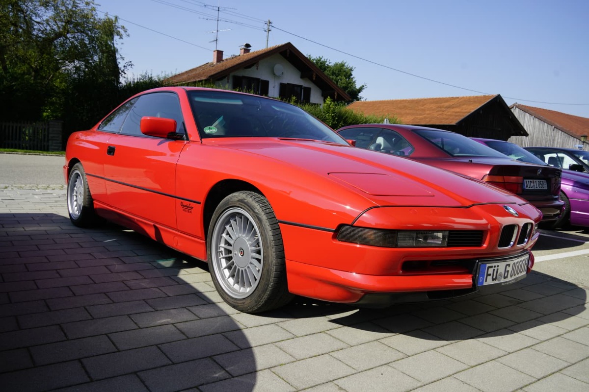 Bei Kaiserwetter waren insgesamt 37 Personen, neunzehn E31, davon ein Alpina B12 5.7 (Nr. 57 von 57) ein E38, ein M6, ein Alfa Spyder und ein Porsche 911 beim Stammtisch zugegen.