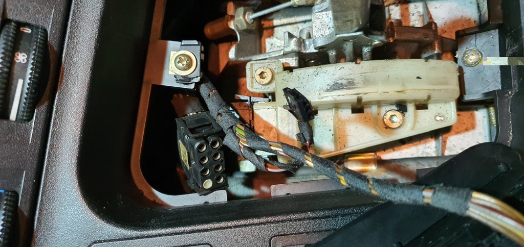 Da hängen die letzten Befestigungsteile noch auf der Mittelkonsole :-(